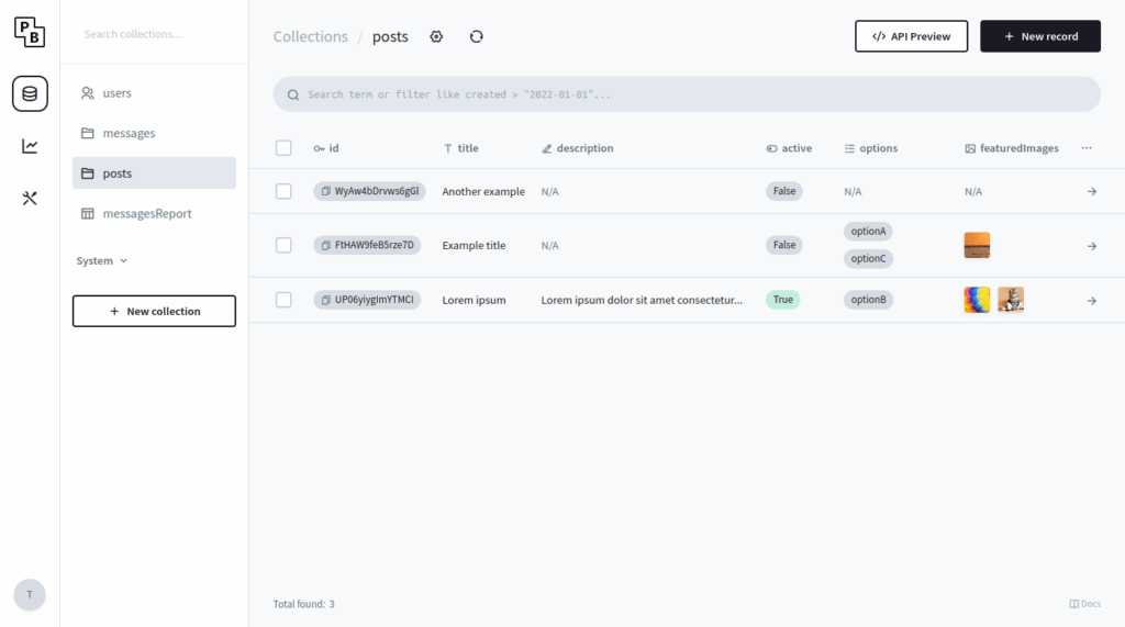 At its core, PocketBase uses SQLite, a lightweight, file-based database that requires zero configuration. SQLite is production-ready, ACID-compliant, and perfect for applications that don’t need distributed scaling from day one. Your data lives in a single file, making backups and migrations trivial.